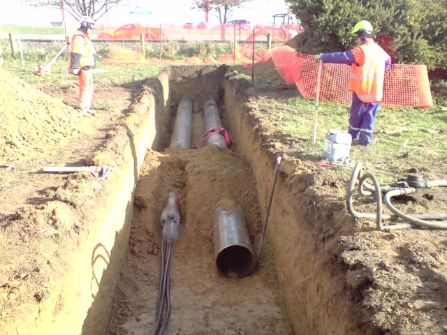 Pipe ramming is a two-stage technique for installing steel casings from a bore pit to a reception pit utilizing dynamic energy from a percussion hammer attached to the end of the pipe. A pneumatic device or "pig" is used to push the spoils into the reception pit. Pipe diameters range from 200mm diameter and up to 4,000mm and with no limit on linear metres.